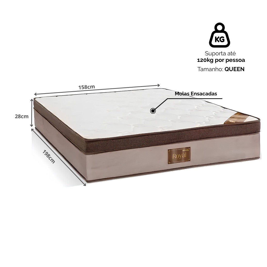 O Colchão Royal da Reconflex é perfeito para quem busca conforto e qualidade. Com molas ensacadas bitola 2.0 que proporcionam independência de movimentos, Europillow para sensação de aconchego, tecido malha 180g no tampo, sistema Rock Side de reforço nas bordas e suporte de até 120kg por pessoa, este colchão oferece noites de sono tranquilas. Você pode se mexer sem atrapalhar o conforto do seu parceiro.