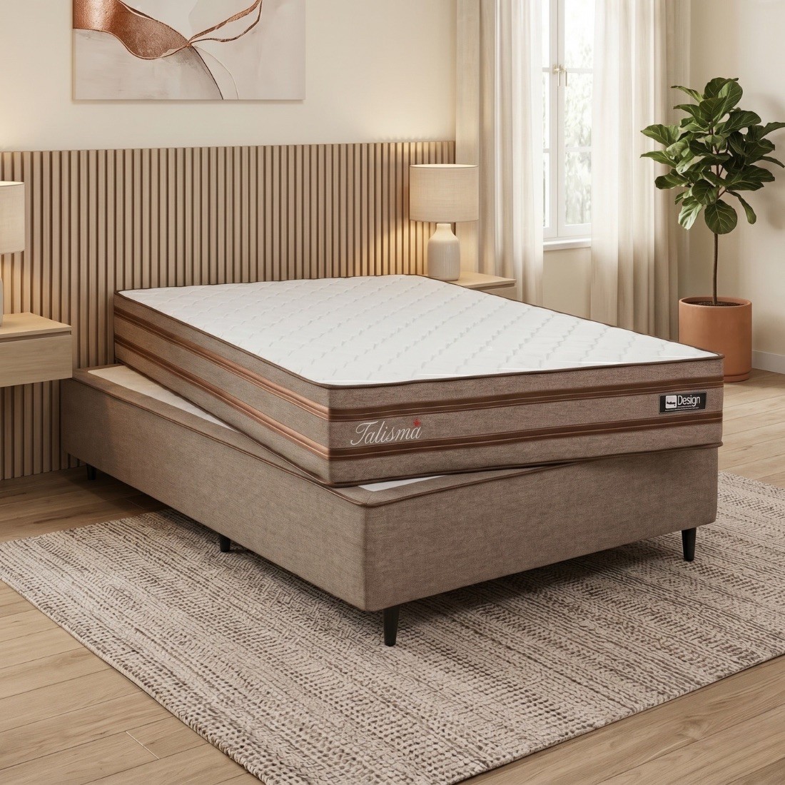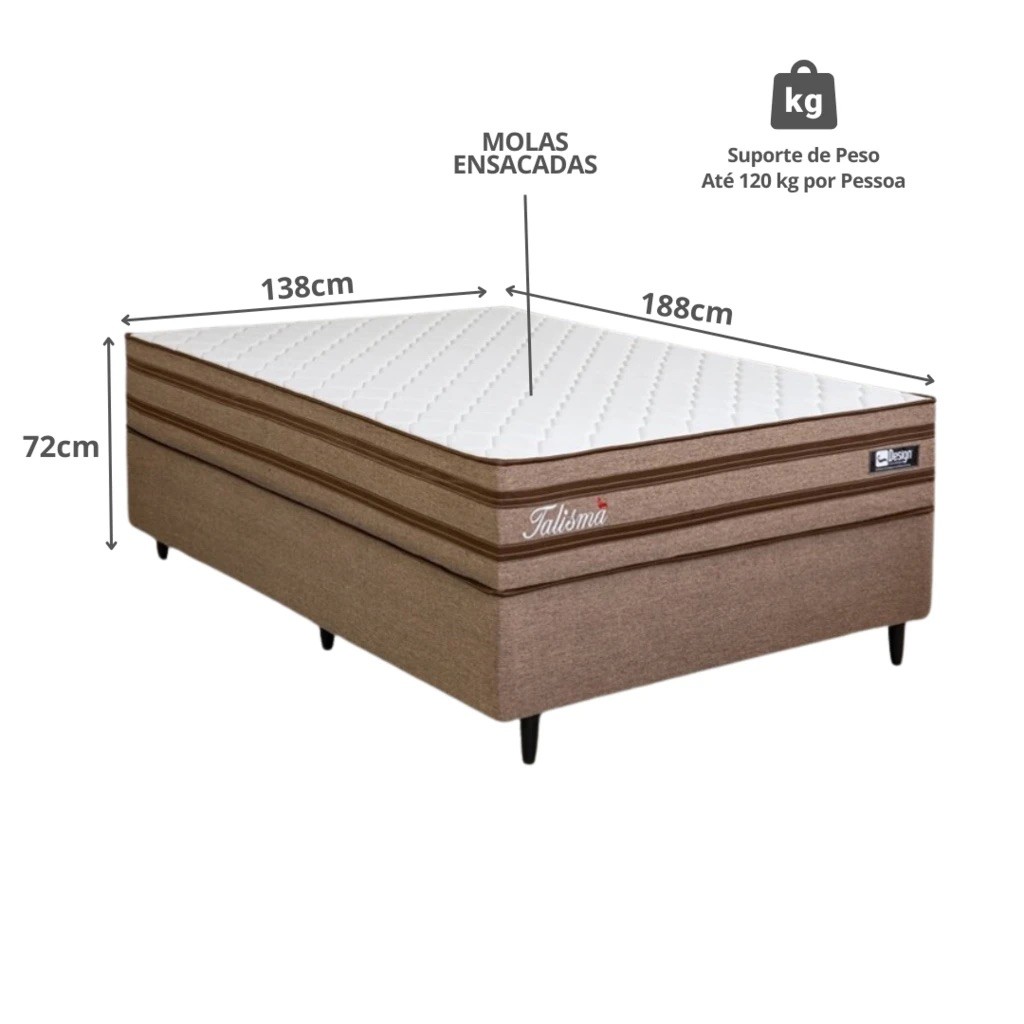 Este conjunto de Cama Box com colchão de molas ensacadas oferece o máximo em conforto e durabilidade, ideal para noites de sono reparadoras. Com uma estrutura resistente e revestimento de alta qualidade, cada detalhe foi pensado para unir praticidade e sofisticação no seu quarto.