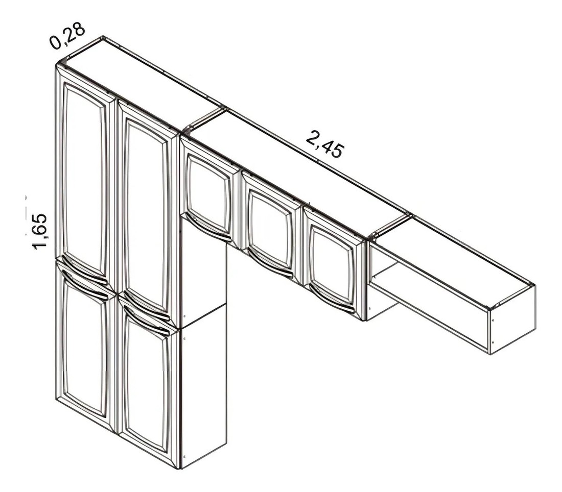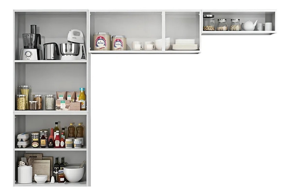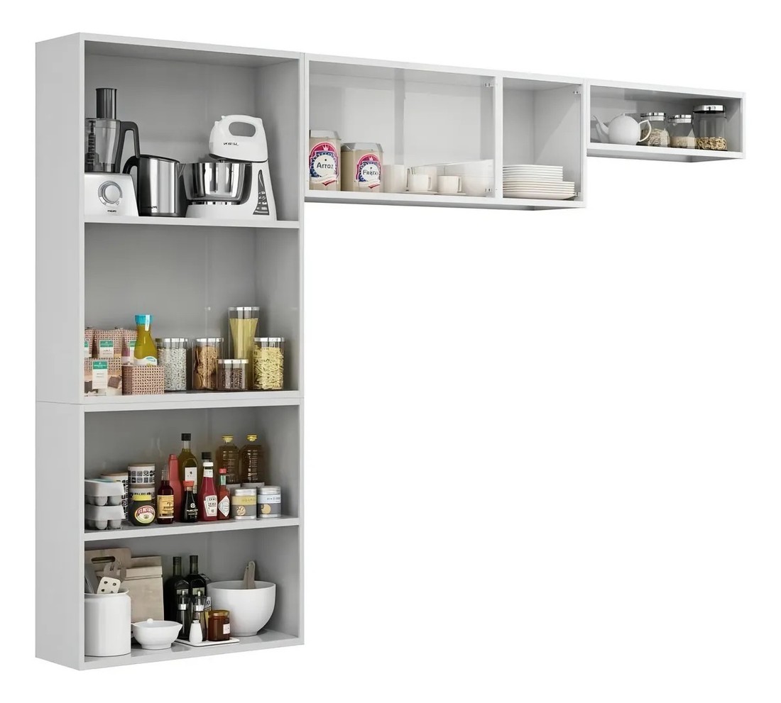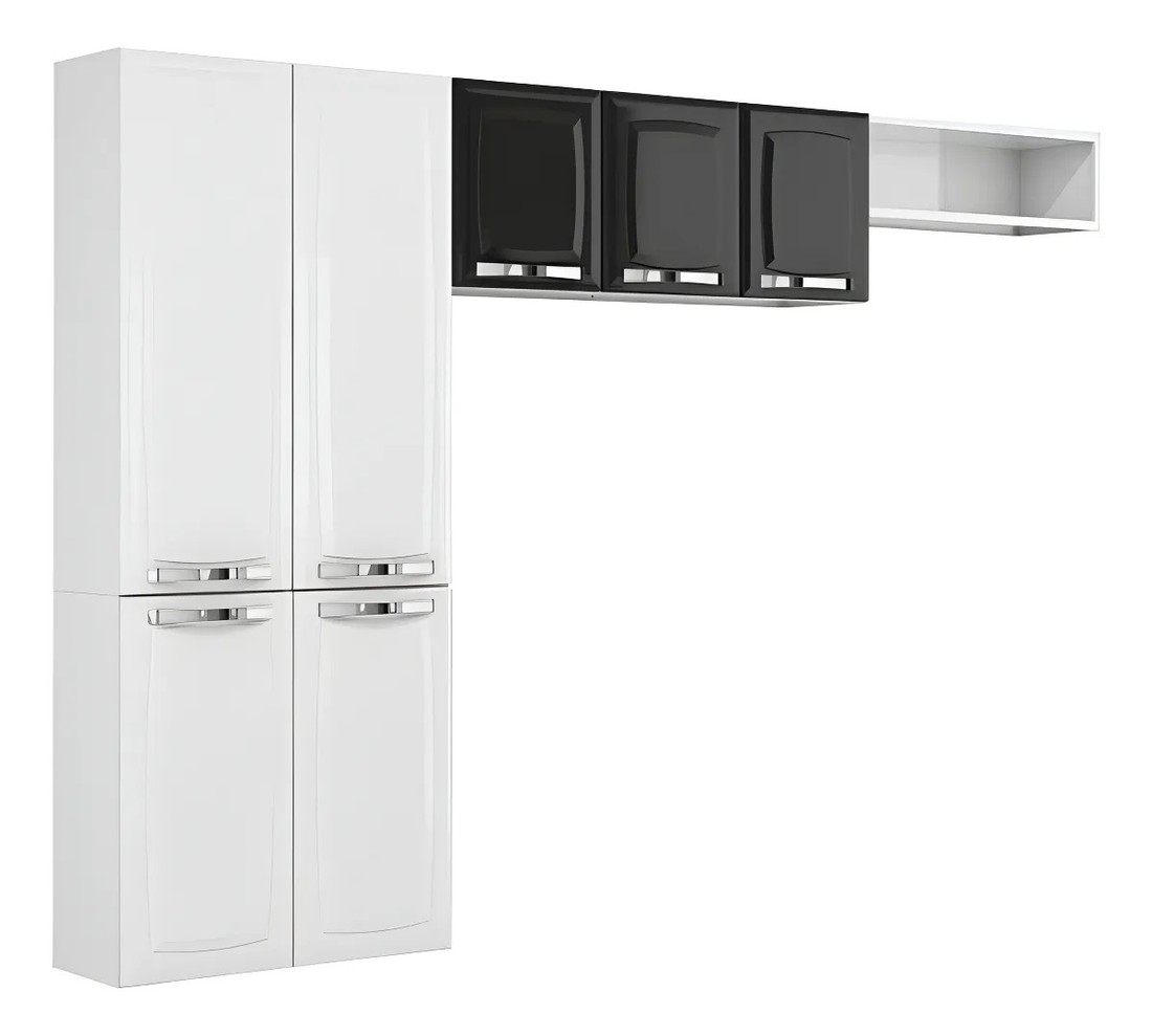 Composição do Kit: 1 Paneleiro Duplo + 1 Armário Aéreo Triplo + 1 Armário Aéreo de Geladeira