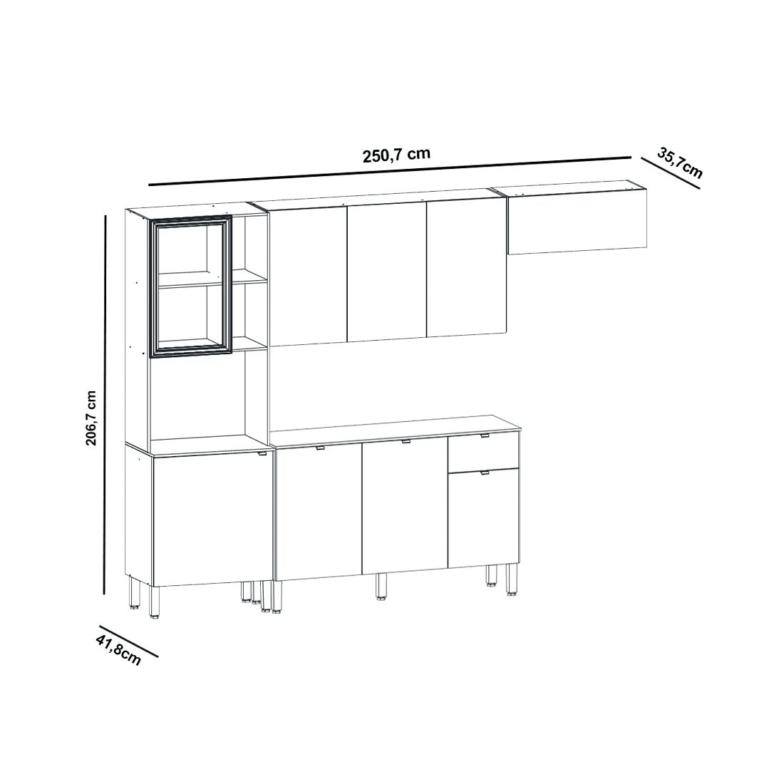 ✓ 100% MDF 12mm: Alta resistência e durabilidade ✓ Porta com Vidro ABS: Visual moderno e elegante ✓ Moldura Preta: Sofisticação e contraste ✓ Porta Basculante com Gás: Abertura suave e segura ✓ Dobradiças 100% Metálicas: Maior durabilidade ✓ Corrediças Telescópicas: Deslizamento suave ✓ Puxadores em Alumínio: Acabamento refinado ✓ Pintura UV: Maior resistência e beleza ✓ Pés Reguláveis: Nivelamento perfeito ✓ Nichos Decorativos: Versatilidade funcional ✓ 250cm de Largura: Excelente aproveitamento de espaço ✓ Prateleiras Internas: Organização inteligente ✓ Design Compacto: Ideal para espaços reduzidos ✓ Madeira de Reflorestamento: Sustentabilidade
