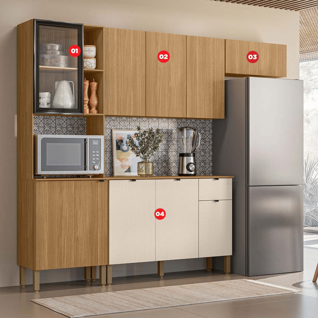Porta Basculante com Suporte a Gás: Sistema que garante abertura suave, segura e prática, ideal para cozinhas dinâmicas. O pistão a gás mantém a porta aberta de forma controlada, proporcionando conforto no uso diário.