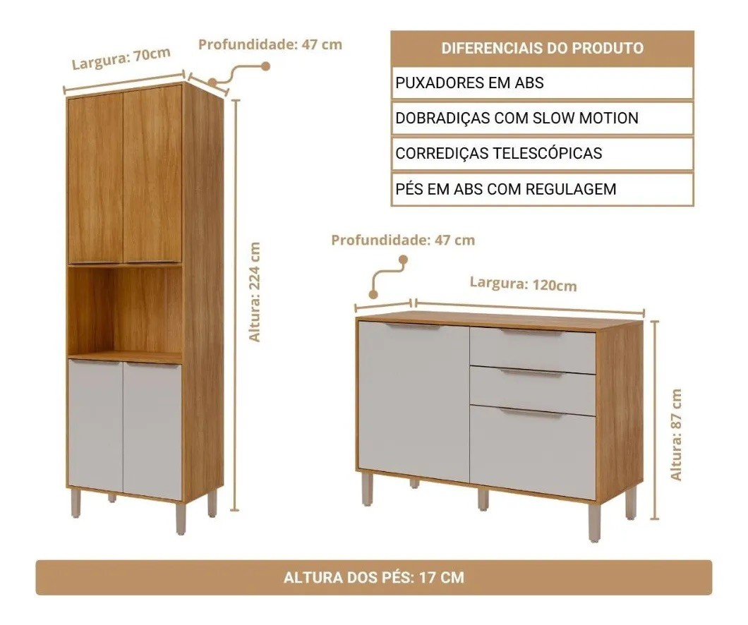 Torre Quente Ergonômica: Paneleiro projetado para acomodar forno e micro-ondas em altura ideal para uso diário.