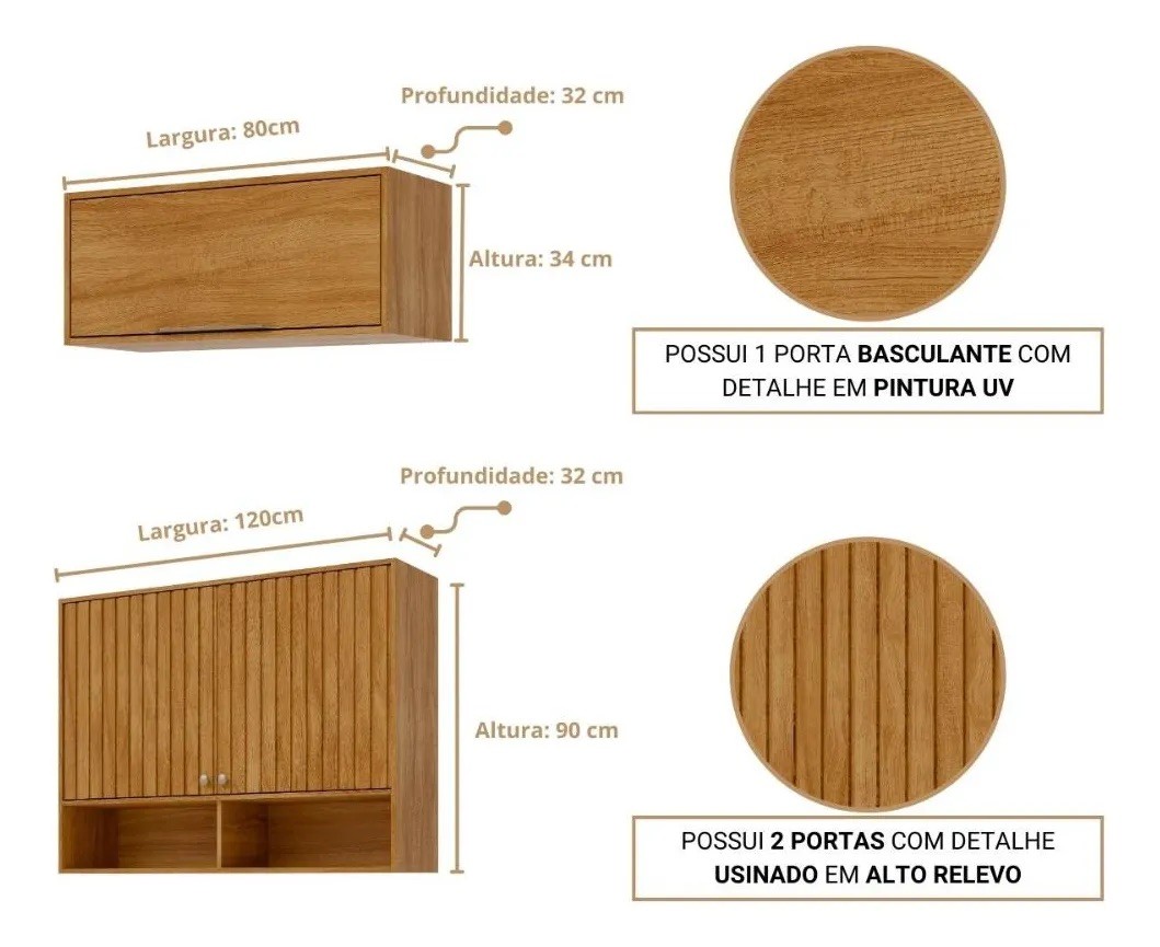 | Armário Aéreo Geladeira | 80 cm | 34 cm | 32 cm |