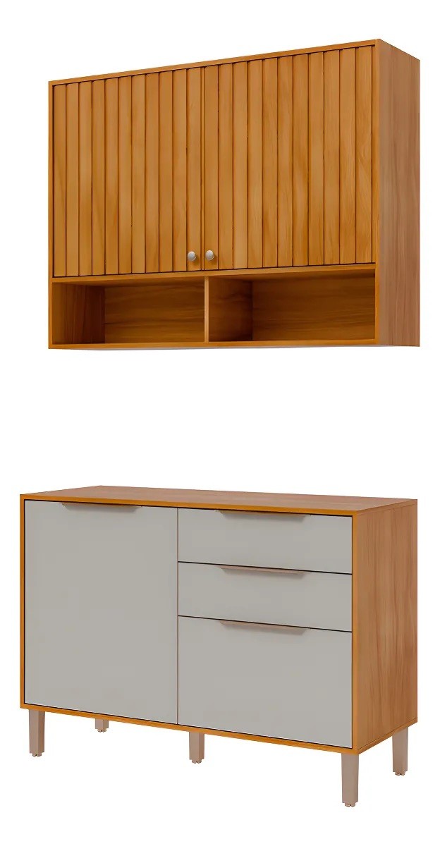 Este conjunto da Linha Divina é a escolha ideal para quem busca otimizar a área da pia com qualidade de móvel planejado. Fabricado em 100% MDF na moderna combinação Cinamomo e Off White, o kit une um armário aéreo com nichos decorativos a um balcão robusto com tampo incluso. É a solução perfeita para garantir durabilidade e sofisticação em módulos de 1,20m.