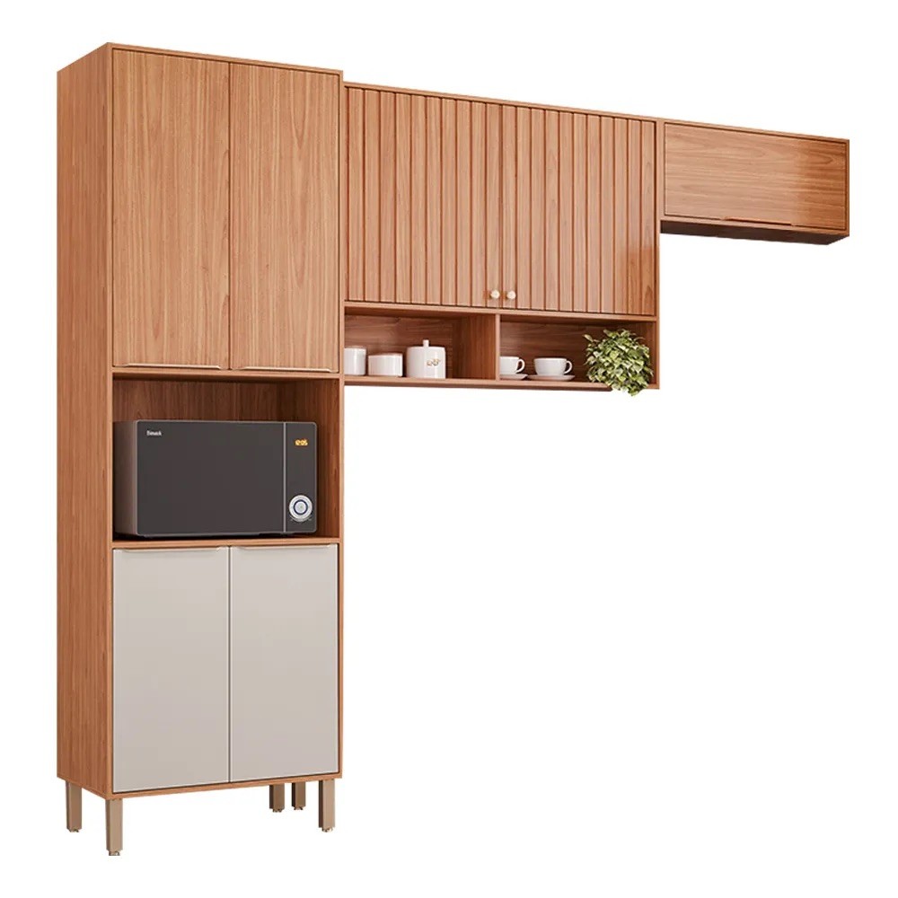 A Cozinha Modulada Divina da MGM Móveis é a escolha definitiva para quem busca o visual de um móvel planejado com a durabilidade do 100% MDF. Unindo o acabamento amadeirado Cinamomo com a elegância do Off White, este conjunto de 4 peças oferece ferragens de luxo e aproveitamento máximo de espaço. É a solução perfeita para uma cozinha moderna, resistente e funcional.