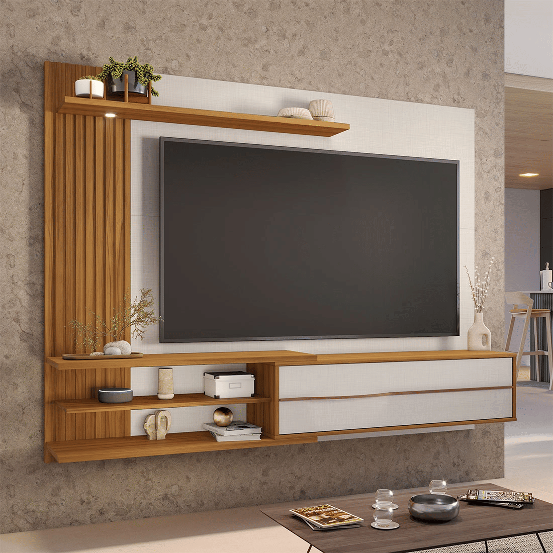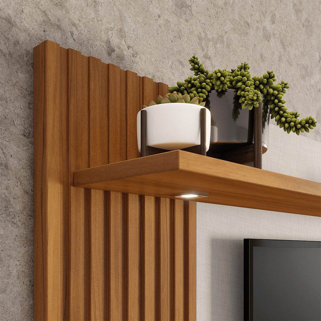 Ripado Lateral Sofisticado: O destaque fica por conta do painel ripado lateral que acrescenta elegância e profundidade visual ao ambiente. Um design diferenciado que impressiona e valoriza qualquer estilo decorativo.