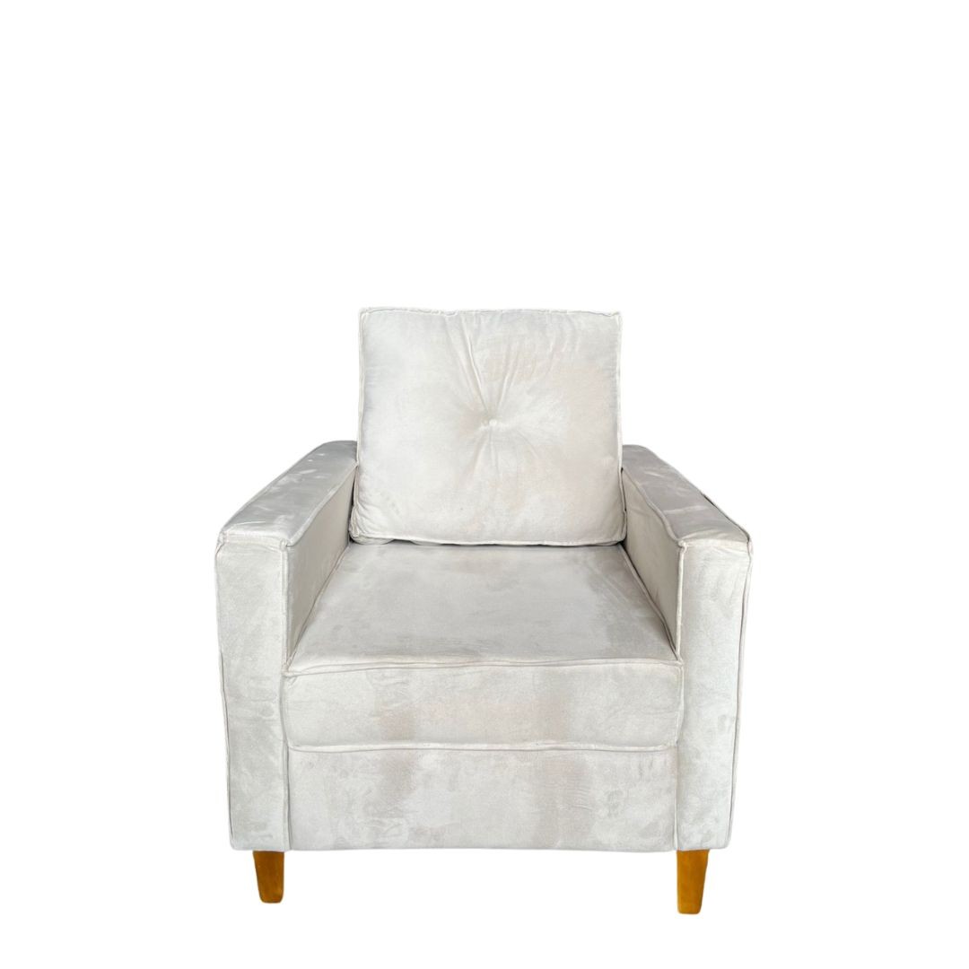 Poltrona Malu Chanel Bege Veludo - Estrutura em Madeira