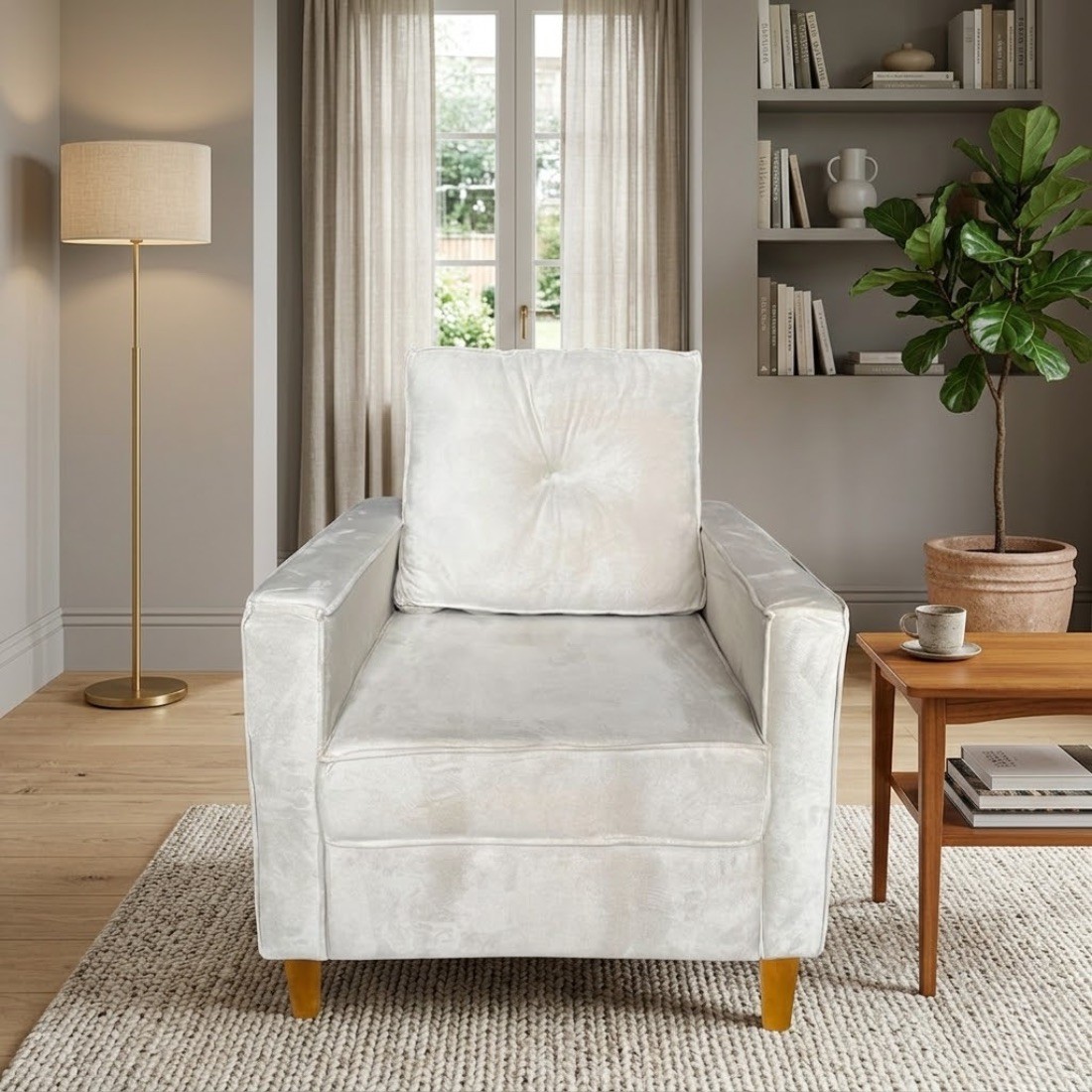 A Poltrona Chanel é a síntese da elegância e do conforto para o seu ambiente. Com um design sofisticado e revestimento em veludo de toque macio, esta peça transforma qualquer sala ou escritório em um espaço mais acolhedor e luxuoso. É a escolha ideal para quem não abre mão de qualidade, durabilidade e estilo na decoração de interiores.