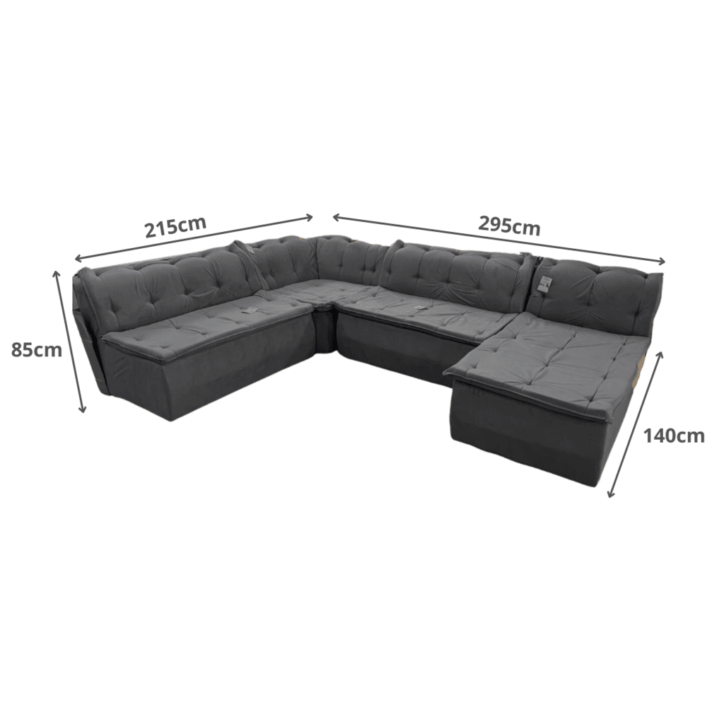 Desfrute de momentos de relaxamento e elegância com o Sofá Chaise Fenix 4 Peças Grafite, perfeito para sua sala de estar!