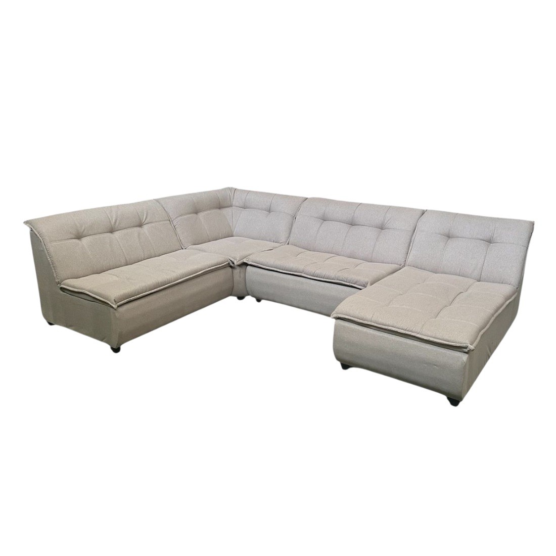 Modularidade Versátil: Composto por 4 peças, incluindo uma chaise e um módulo de canto, permitindo adaptar o layout conforme a necessidade do seu espaço.