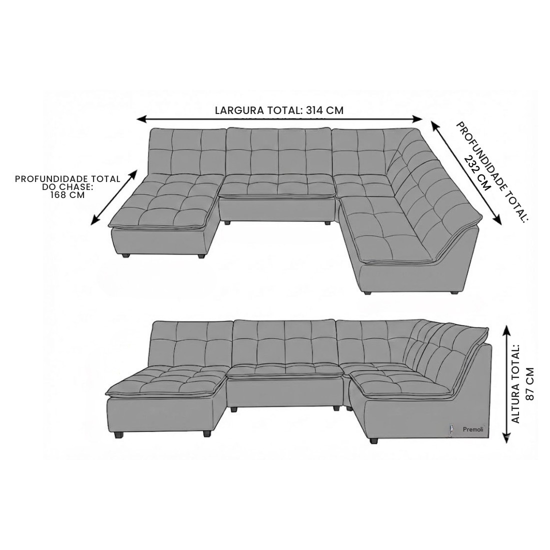 Verifique se as dimensões totais (314x232cm) são compatíveis com o espaço disponível na sua sala.