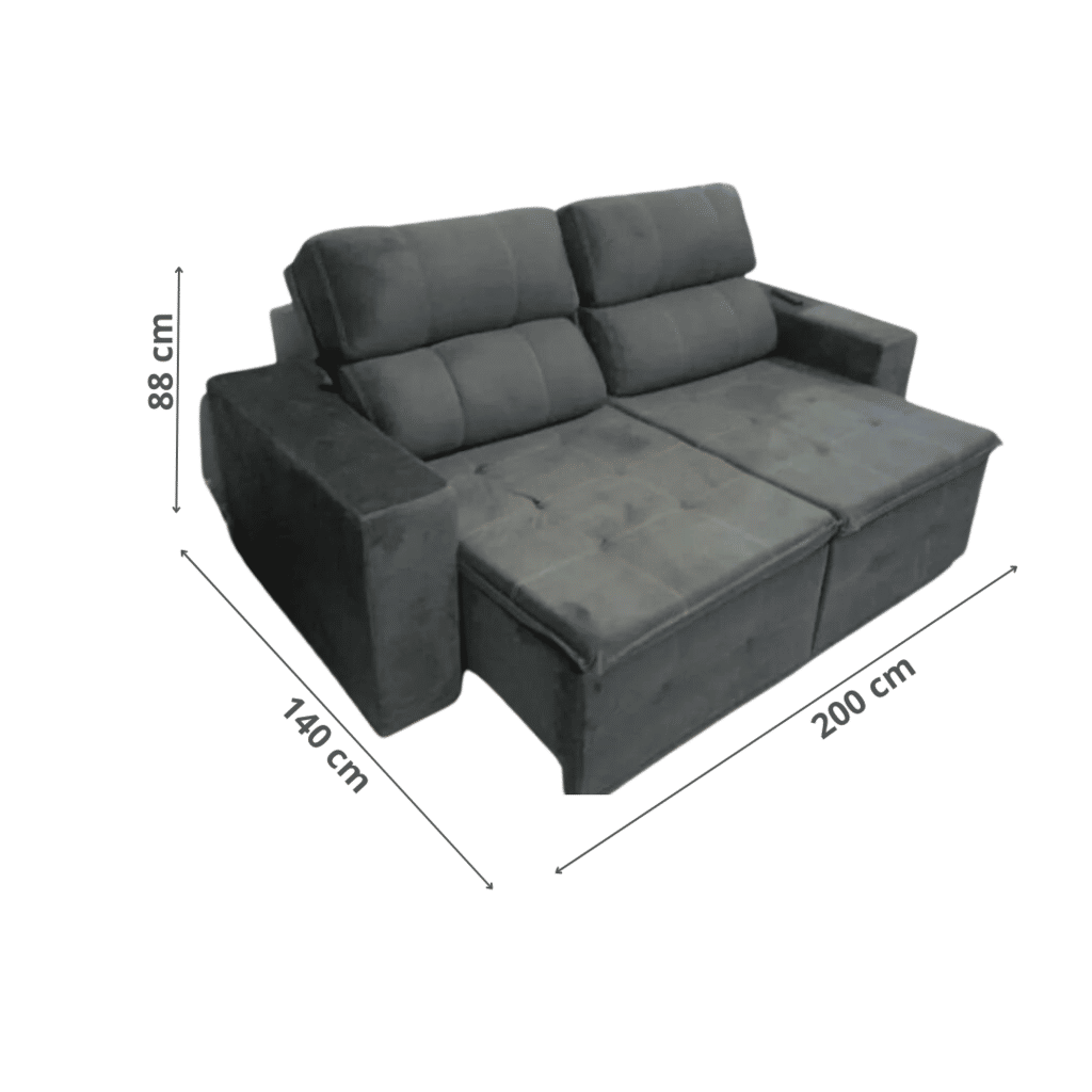 - Praticidade: Ideal para salas de todos os tamanhos, graças à sua funcionalidade retrátil e reclinável, que otimiza o espaço disponível.