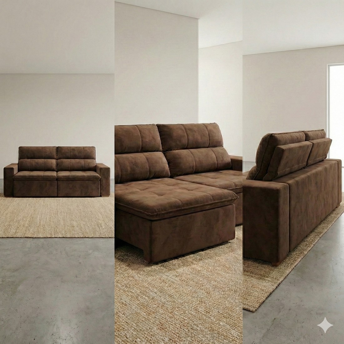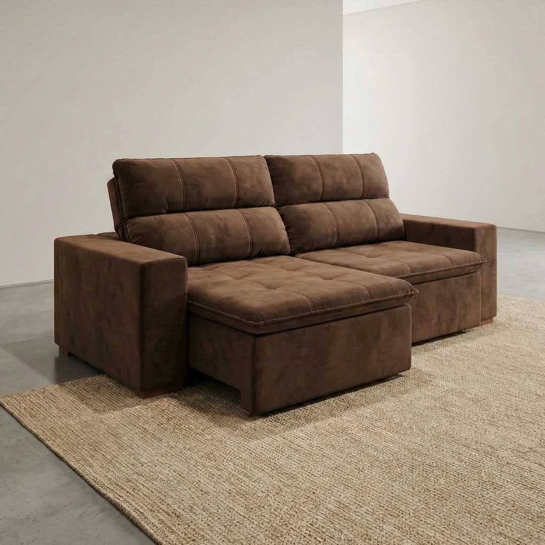 - Conforto: Com assento retrátil e encosto reclinável, o sofá se adapta às suas necessidades, proporcionando conforto superior.